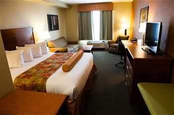 Guest Room Amenities: - Cable 40-inch LCD television, Telus Optik TV® - In-room movie channels - AM/FM alarm clock w/ aux input - Single brew coffee & tea makers - Microwave & refrigerator - |